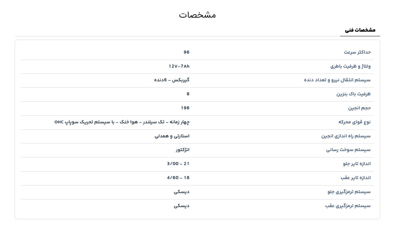 مجهز به موتور 196 سیسی با تکنولوژی بهینهسازی شده، این مدل قدرت کافی برای حرکت در جادههای سخت و شرایط چالشبرانگیز فراهم میکند.